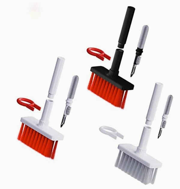 - MULTI-TASK: 5-in-1 laptop cleaning brush Kit with Nylon Bristles, Flocking Sponge, High-density Brush, Metal Pen Tip And Keycap Puller, Dual Head Hidden design to meet a Variety of Cleaning Needs.