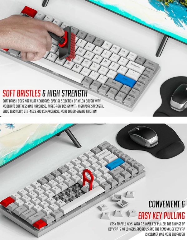 - KEYBOARD CLEANING KIT: Special Selection of Nylon Brush with Moderate Softness and Hardness, Three-row Design with High Pore Strength, Good Elasticity, Stiffness And Compactness, More Labor-saving Friction.