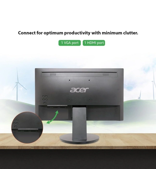 • Step into a realm of visual brilliance with the Acer Monitor, where HD Display technology transforms your entertainment experience. Immerse yourself in the captivating world of your favourite shows and movies as the HD resolution brings forth sharper details and a spectrum of accurate colours. Elevate your viewing pleasure to new heights as every frame comes to life with unprecedented clarity.