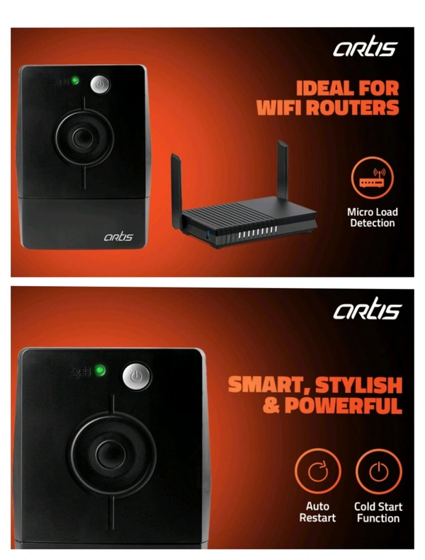 - Micro Load detection ensures no cut off even with micro loads such as only Wifi routers. Auto Restart and Cold Start capability helps start PC directly with UPS when Mains power is unavailable