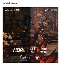- Powered by an efficient AMD FreeSync technology, this gaming monitor renders seamless graphics performance and flawless audio quality to make your gaming experience extremely thrilling. And, with a refresh rate of up to 165 Hz, response time as low as 1 ms and HDRi optimization, it offers you fast-paced gaming performance.