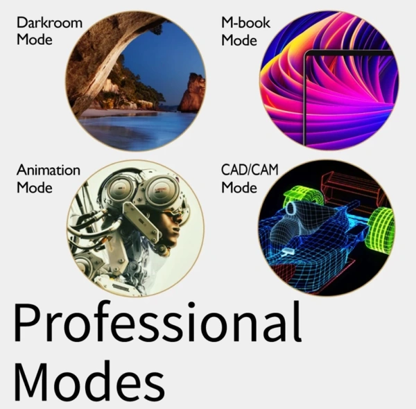 - Specialized Designer Modes: Darkroom, CAD/CAM, M-Book mode and Animation modes customize display settings to enhance precision and productivity