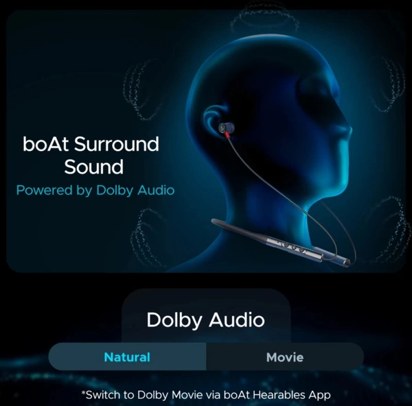 - Boat Surround Sound with Dolby Audio: These neckband earphones deliver spatial audio with high clarity for enhanced listening. Get ready to be enveloped by the sound for a realistic feel while watching movies or playing fast-paced games.