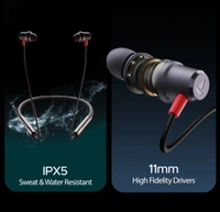 - Splash-proof: Designed with an IPX5- rated build, these earphones are safeguarded against sweat from heavy workouts or water splashes. So, you can carry them along without worrying about damage.