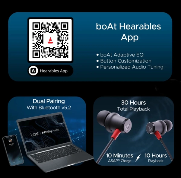 - BoAt Hearables app compatibility: The boat Hearables app offers easy access to a plethora of controls, customizable modes, upgrades, troubleshooting fixes, and more.