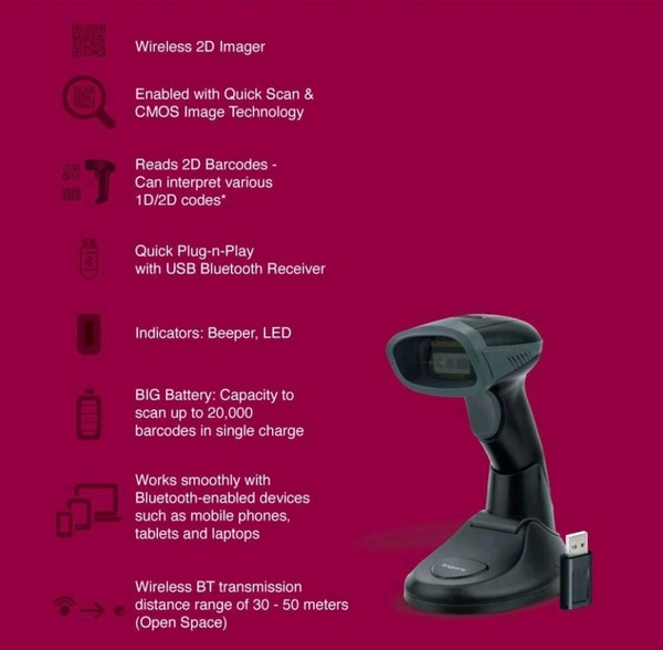 - Reliability is its middle name and can be used as a Wired or Wirelessly (through USB Receiver or Bluetooth) depending on the need of the hour. Ergonomically designed with handheld form factor, it is engineered for superior comfort and highly accurate scanning, thereby eliminating wasted seconds and improving users' efficiency.