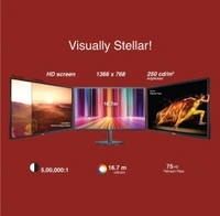 - HD screen resolution of 1366 x 768 and 250 cd/m2 brightness for stunningly accurate colours, refined detailing, and radiant display.