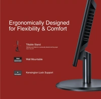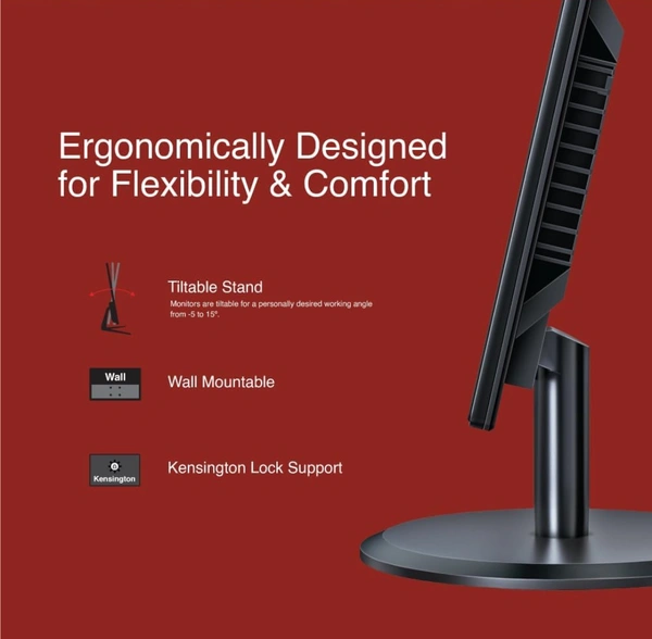 - Comes with a Tiltable stand from -5 to 15º for a personally desired working angle. Plus, it is wall-mountable and comes with Kensington Lock supportfor security.
