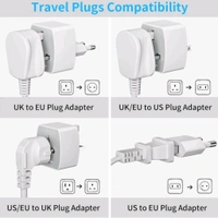 - The adapter is versatile, supporting UK to EU, UK/EU to US, US/EU to UK, and US to EU plug types, making it suitable for all your international devices.