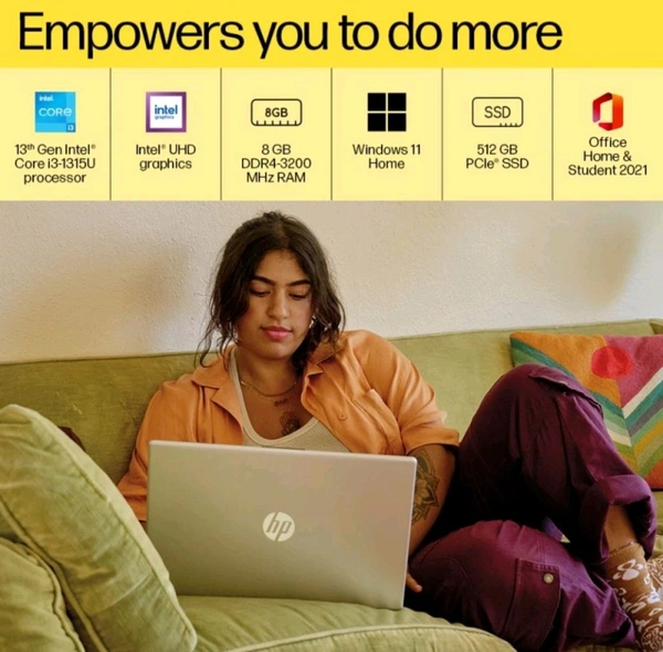 HP 15 Laptop 13th Gen Intel Core i3-1315U, 8GB DDR4, 512GB SSD, (Win 11, Office 21, Anti-Glare, Micro-Edge, 15.6" FHD , Intel UHD Graphics