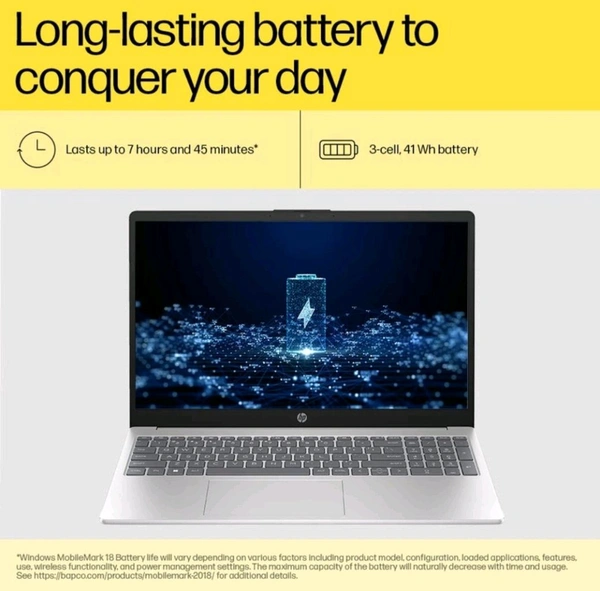 - Long-lasting battery - The 3-cell, 41Wh battery offers extended usage for up to 7 hours and 30 minutes. Stay unplugged and productive throughout your day with HP Fast Charge support.