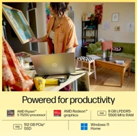 HP Laptop 15 AMD Ryzen™ 5 7520U, 15.6" FHD, 8GB LPDDR5, 512GB SSD, Dual Speakers,MSO,Windows 11