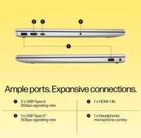 - AMD Radeon Graphics - micro-edge;Full- size,backlit,soft grey keyboard with numeric keypad, HP Imagepad; Wi-Fi 6 (1x1) and Bluetooth 5.3 wireless card; 1 USB Type-C 5Gbps signaling rate (supports data transfer only and does not support charging or external monitors); 2 USB Type-A 5Gbps signaling rate; 1 AC smart pin; 1 HDMI 1.4b; 1 headphone/microphone combo.