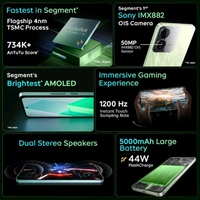 - Fully Loaded Display - 16.9cm(6.67") 120Hz Full HD+ AMOLED Display with 1800 nits local peak brightness, Certified by SGS Eye Care Display, DT Star2-Plus Glass protection, HDR playback supported
