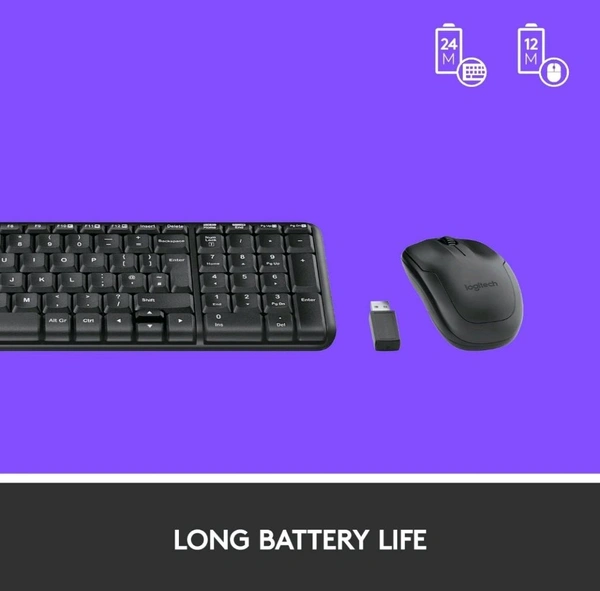 - The Logitech Combo MK220 Wireless Keyboard and Mouse works best on computers that run on Windows XP, Vista or 7, 8 ,10 or more. The Wireless Logitech Keyboard is powered by 2 AAA batteries and if used properly the battery charge should last at least 24 months. The wireless mouse uses 2 AA batteries which are estimated to last up to 5 months under normal circumstances.