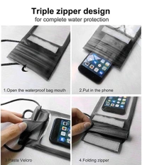 - Enjoy your mobile phone use while on the pool, boat, beach, cruise or in the water Special closing system provides full protection Protects your mobile phone against water, dust, dirt and sand.