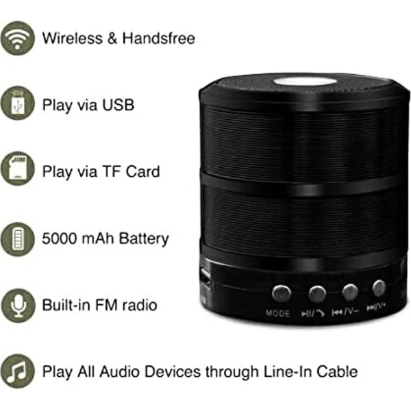 - WS-887 Bluetooth speaker is wireless, you can listen to your music without worry about too many wires twist together WS-887 Mini Bluetooth speaker has unique design and miniature size,you can carry it when you travel,go to gym or hike High-quality solid sound and impressive stereo sound performance, you can hear everything your song want to you to hear With AUX port supported, you can connect with device that don't have bluetooth.