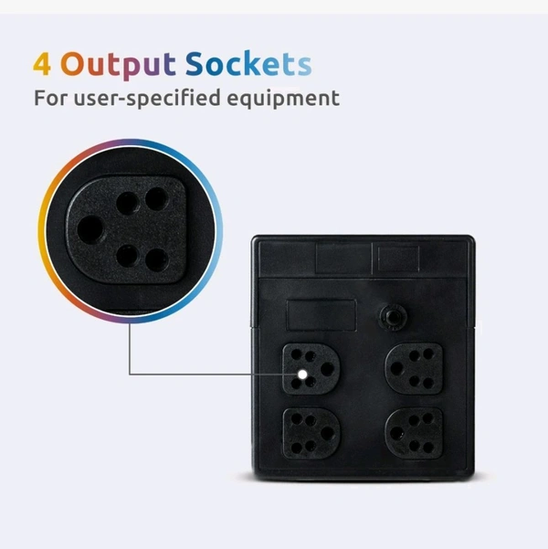 - Available with 3 No's, 6A Indian Outlets to power user specified equipment Built in 1*7AH Battery Provides 5 - 60 Min Backup time *as per user connected load