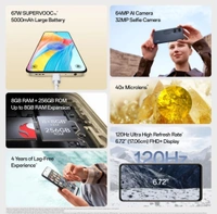 - 64MP Triple Camera (64MP Main + 2MP Monochrome + 2MP Microscope ) with Al Color Portrait and Dual View Video | 32MP Front Camera