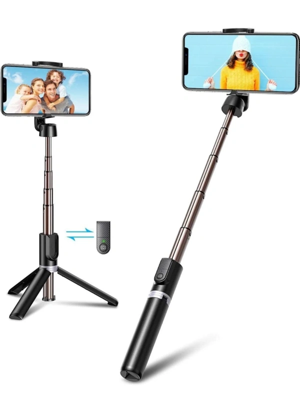 - Hold up Bluetooth Extendable Selfie Stick with Wireless Remote for Making, Vlog Videos and Tripod Stand Selfie Stick for Mobile and All Smart Phones.