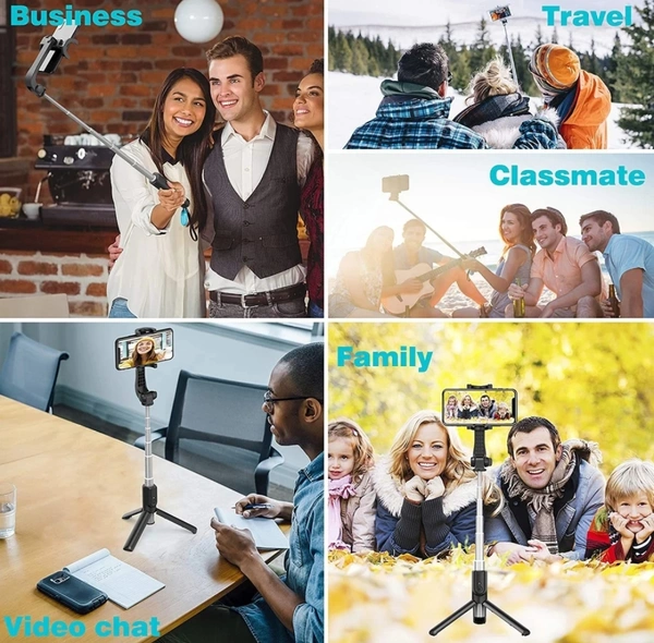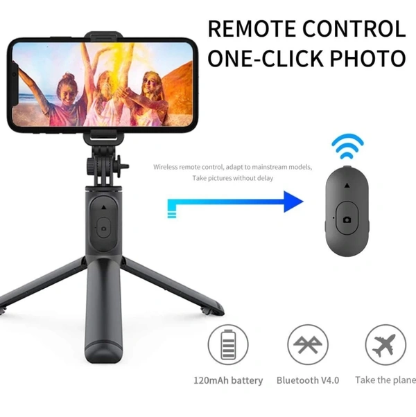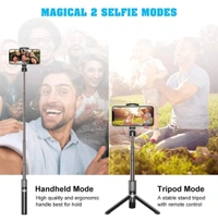 - Three-in-one Compact selfie stick with Wireless Remote Control and integrated with tripod, product length up to 60 cm, the range of the wireless connection can be up to 10 meters.