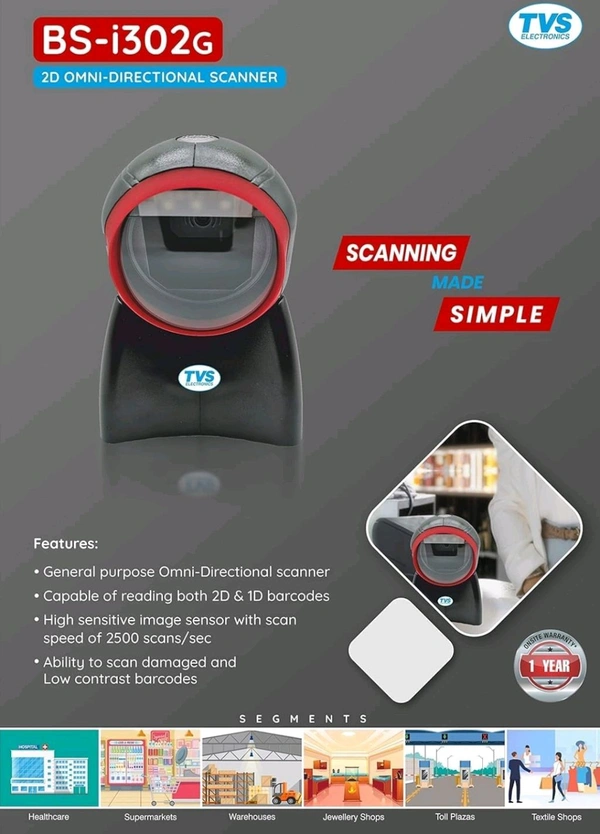 TVS BS-i302 G Handheld 1D 2D High-Speed Scan Reader Barcode Scanner