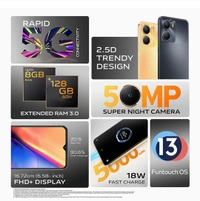 - Camera: Dual 50MP+2MP Rear Camera | 16MP Selfie Camera with rear flash, night mode