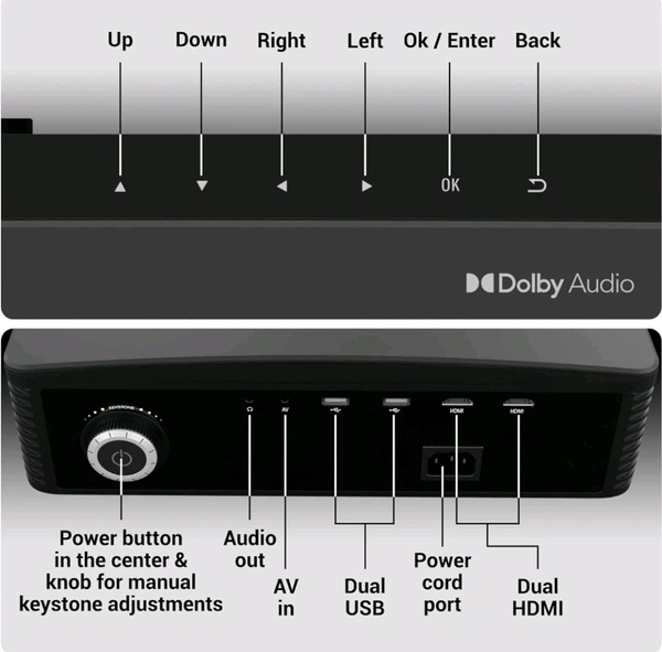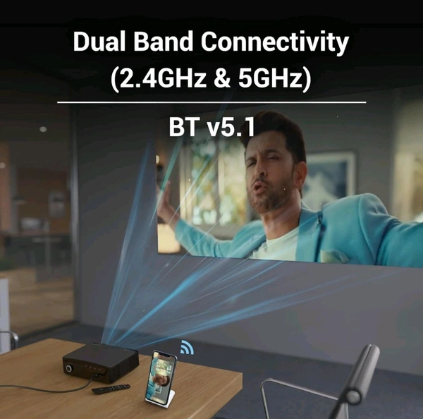 - The projector supports 2x HDMI in, AV in, 2xUSB and AUX out (speaker), for various connectivity options. You can also stream online content with the dual band WiFi (2.4GHz/5GHz) support and Android 9.0 OS support.